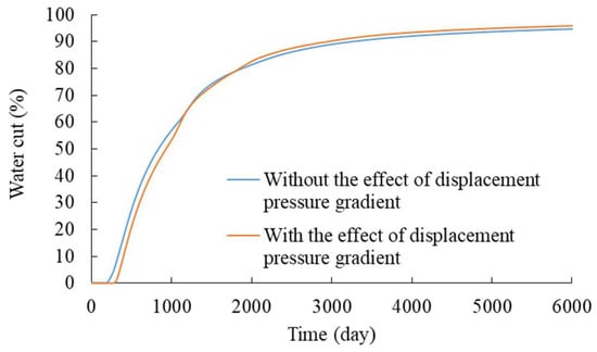 Comparison of water cut with and without the effect of displacement pressure gradient.