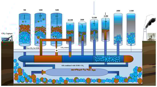 This schematic representation serves as an insightful guide into the dynamics of CO2 injection and its interaction with crude oil within the context of underground oil reservoirs, emphasizing the critical role of the miscible zone in enhancing oil recovery efficiency.