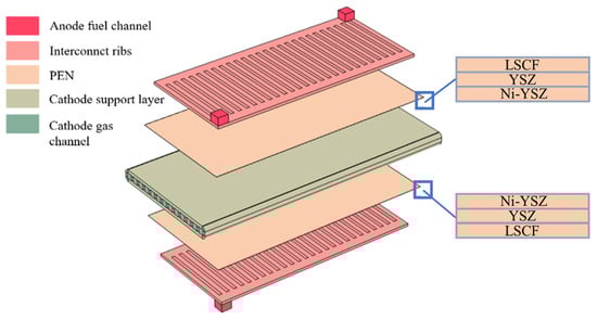 - Kim, Y.J.; Lee, M.C. Numerical investigation of flow/heat transfer and structural stress in a planar solid oxide fuel cell. Int. J. Hydrogen Energy 2017, 42, 18504–18513. [Google Scholar] [CrossRef]
