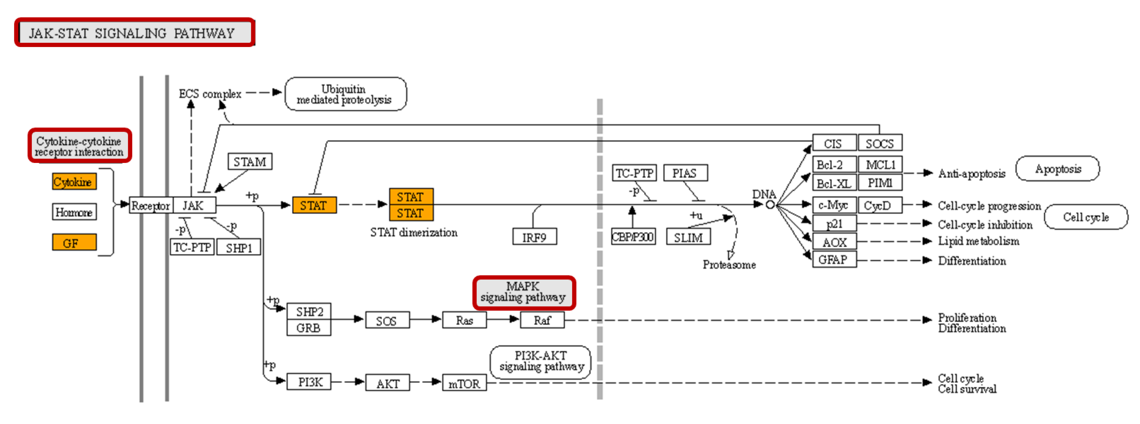 | JAK-STAT signaling pathway | 4/162 | 0.0016 | 12.66 | 103.88 | IL10; IL4; STAT3; PDGFB |