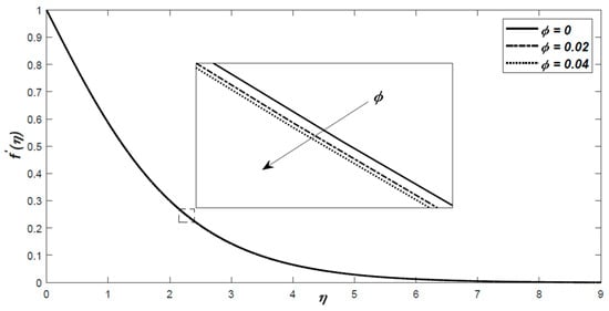 The dimensionless velocity profiles with  for Al2O3–water with respect to similarity variable .