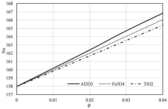 The variation of the Nusselt number for all three nanofluids.