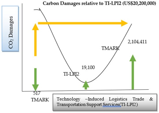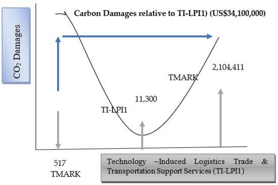 Calculation of Carbon Damages with Technological –Induced Logistics Performance Indices.
