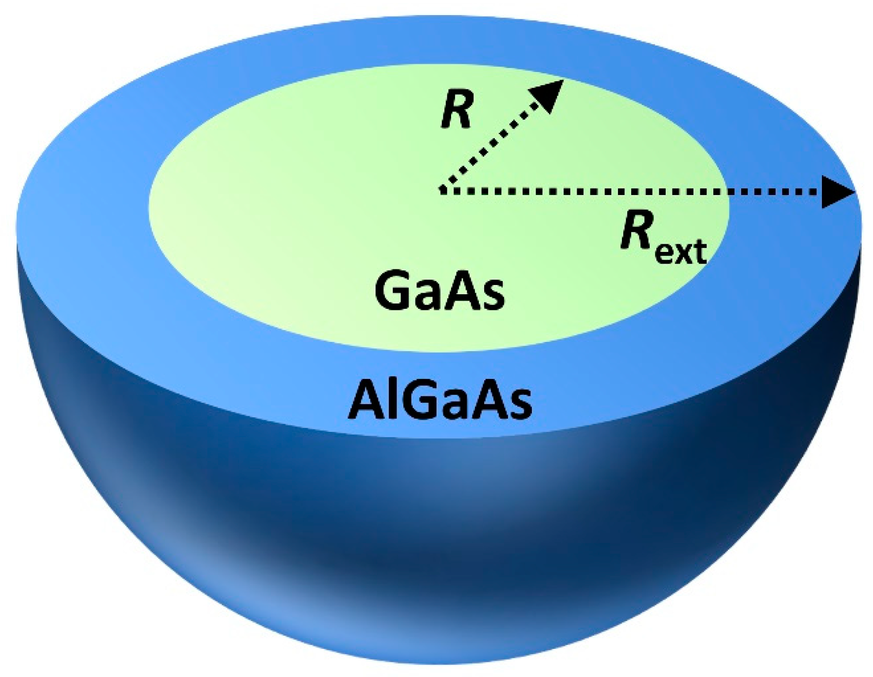 - Holovatsky, V.; Chubrei, M.; Yurchenko, O. Impurity photoionization cross-section and intersubband optical absorption coefficient in multilayer spherical quantum dots. Phys. Chem. Solid. State 2021, 22, 630. [Google Scholar] [CrossRef]