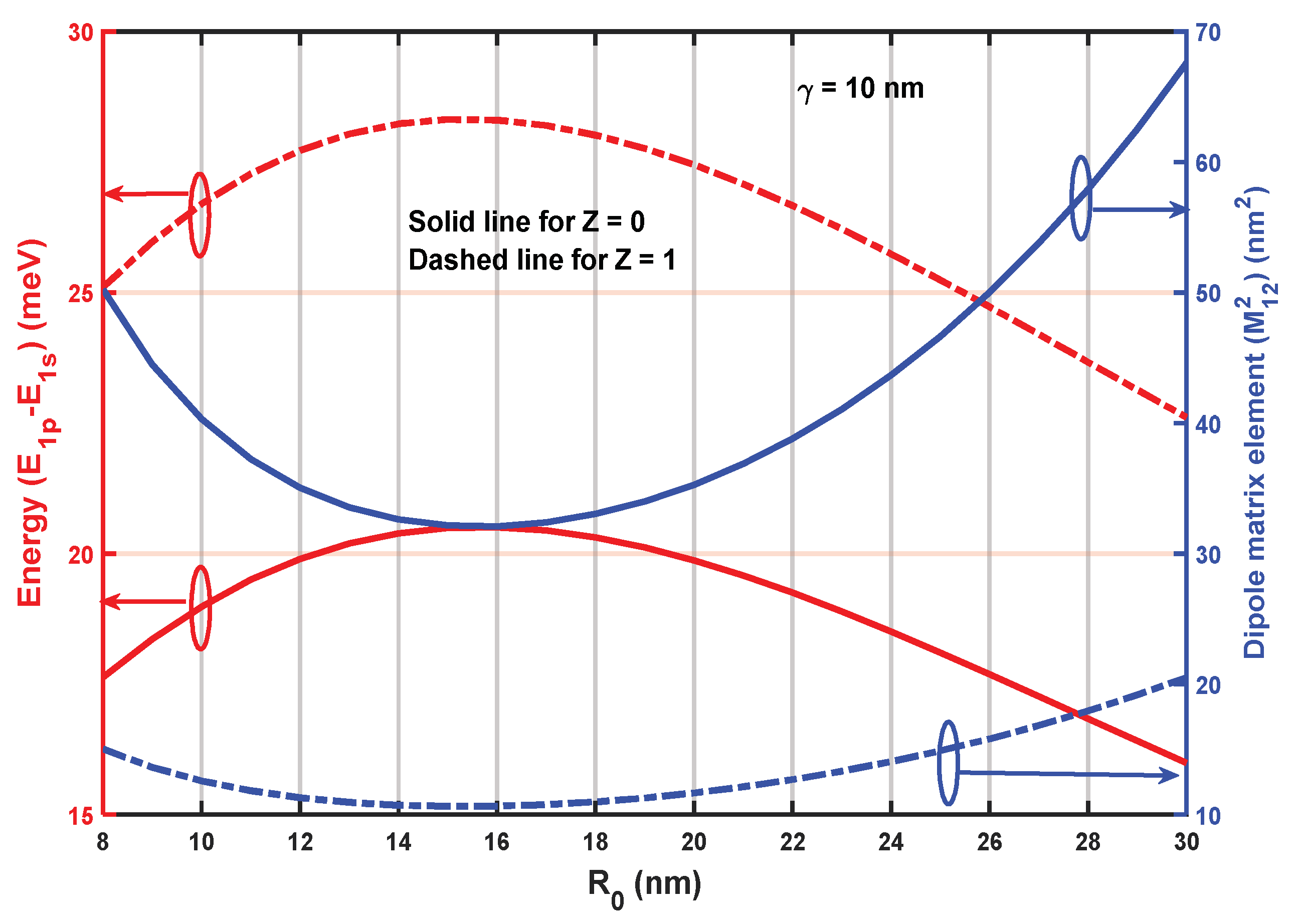 - Yilmaz, S.; Safak, H. Oscillator strengths for the intersubband transitions in a CdS–SiO2 quantum dot with hydrogenic impurity. Phys. E 2007, 36, 40. [Google Scholar] [CrossRef]