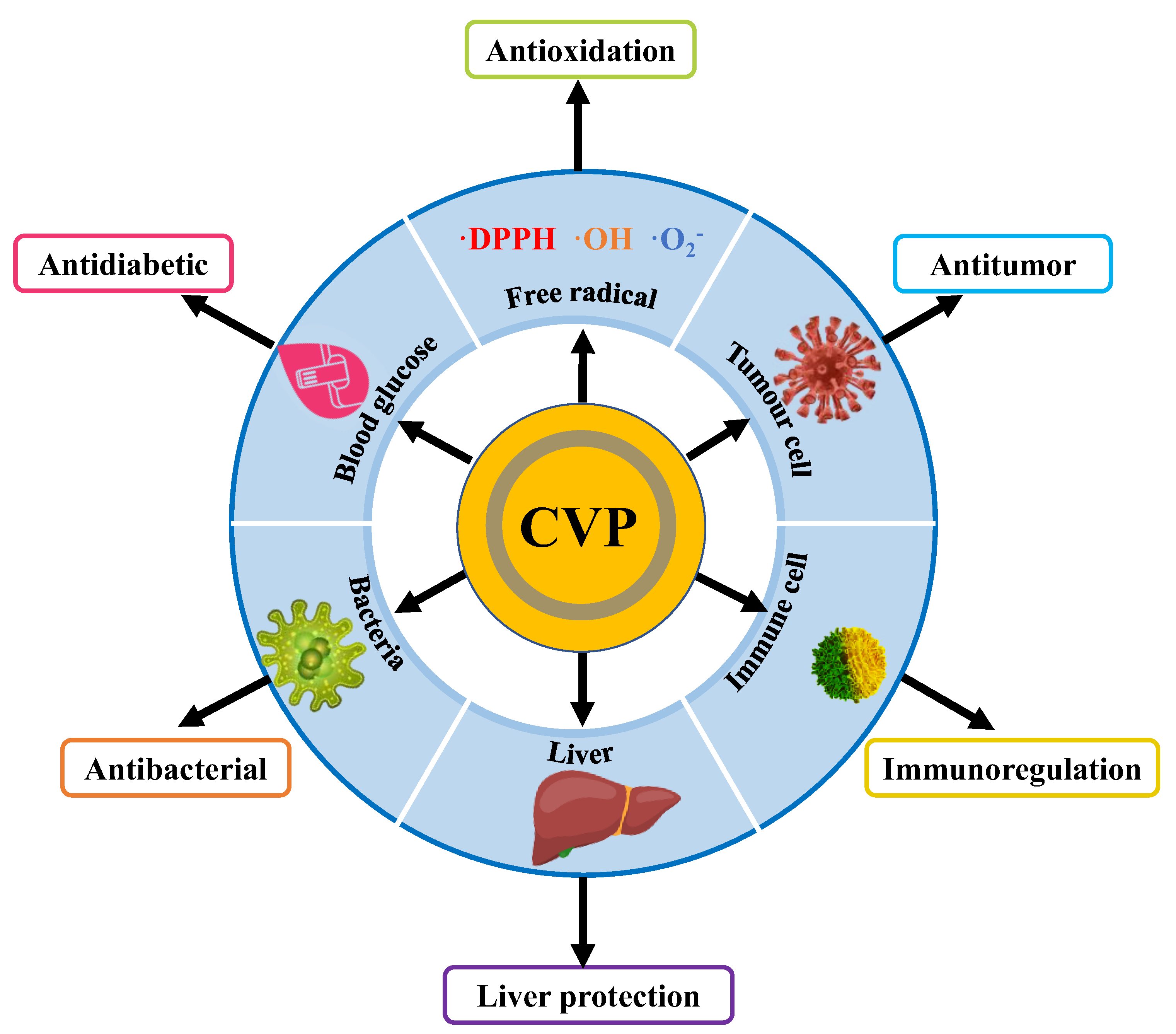 | In vitro | The scavenging activity of DPPH radical (64.9% at 0.8 mg/mL), O2•− radical (78.4% at 1.2 mg/mL) and OH radical (71.2% at 2.0 mg/mL) | [9] |