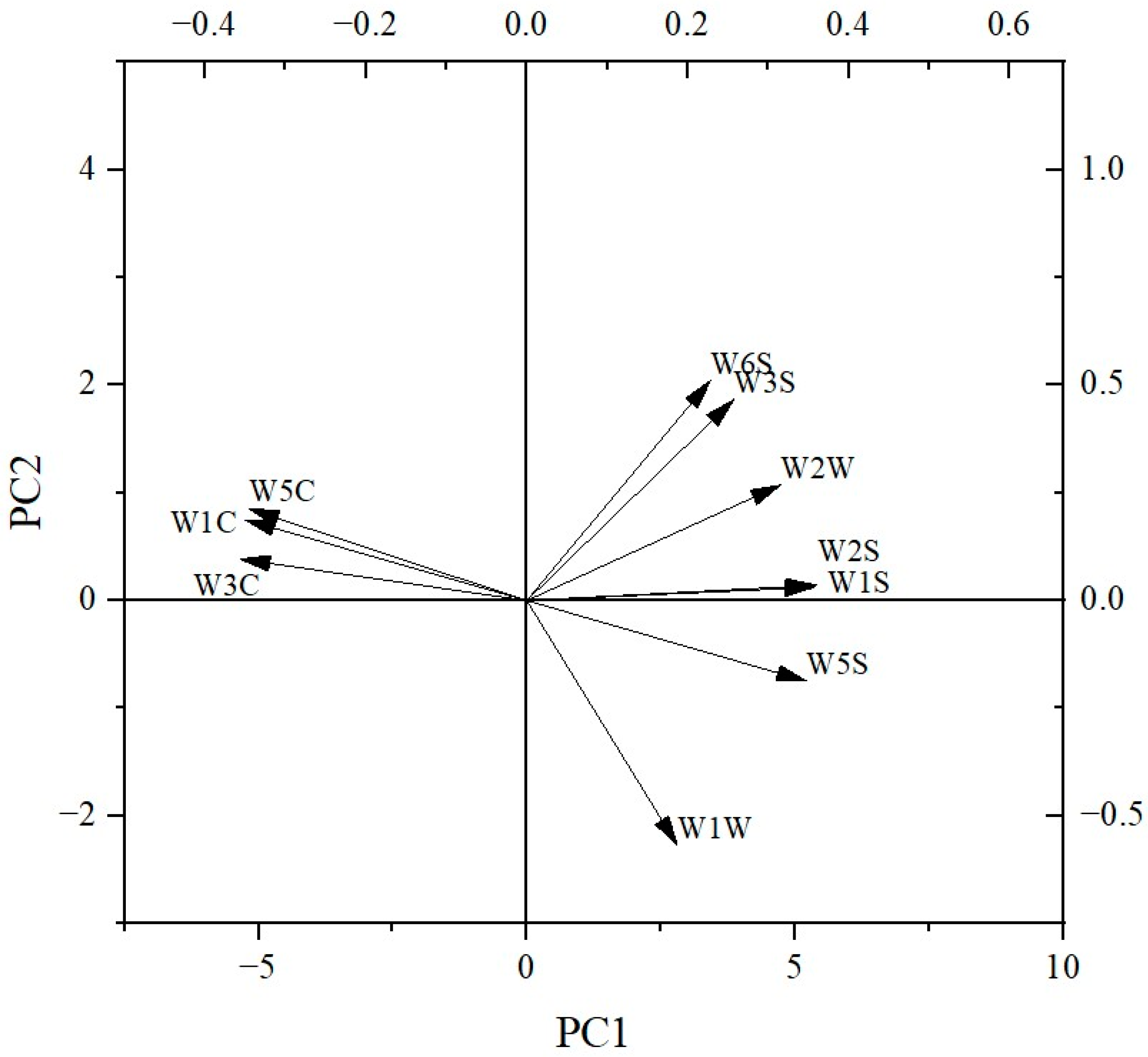 3.6. Electronic Nose for the Smell Characteristics of Peanuts