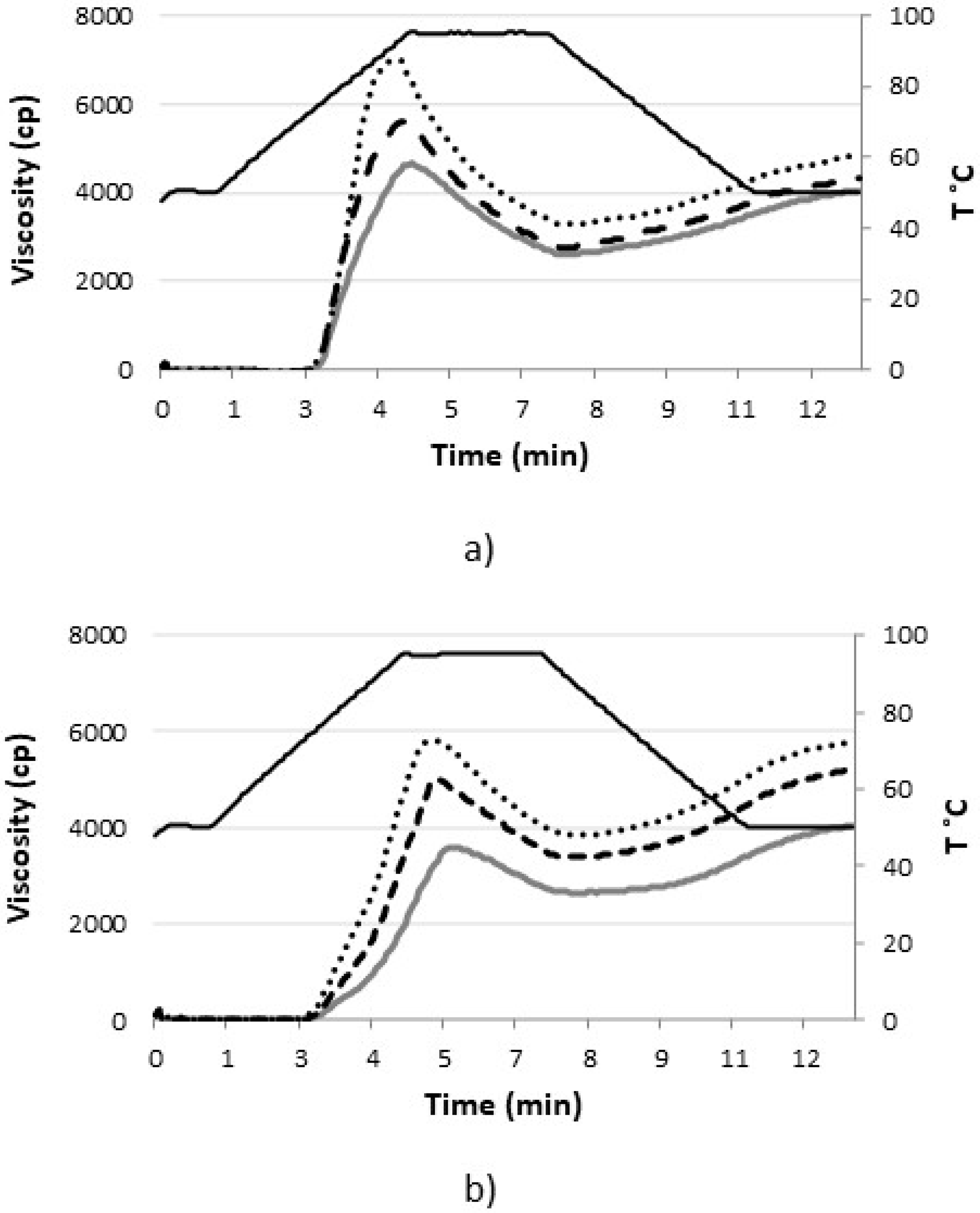- AACC International Approved Methods. Method 76–21.02. General Pasting Method for Wheat or Rye Flour or Starch Using the Rapid Visco Analyzer; American Association of Cereal Chemists: St Paul, MN, USA, 2012. [Google Scholar]