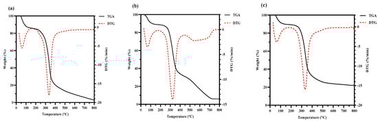 A TGA 8000 thermogravimetric analyzer (Perkinelmer Management Shanghai Co., Shanghai, China) was used for the thermogravimetric analysis (TGA) of the HPS. We placed the HPS in the crucible and heated it from 30 °C to 800 °C to observe its mass change. The carrier gas was N2, and the heating rate was 20 °C/min [31].