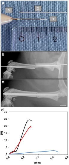 - Schoen, M.; Rotter, R.; Schattner, S.; Mittlmeier, T.; Claes, L.; Vollmar, B.; Gradl, G. Introduction of a new interlocked intramedullary nailing device for stabilization of critically sized femoral defects in the rat: A combined biomechanical and animal experimental study. J. Orthop. Res. 2008, 26, 184–189. [Google Scholar] [CrossRef] [PubMed]