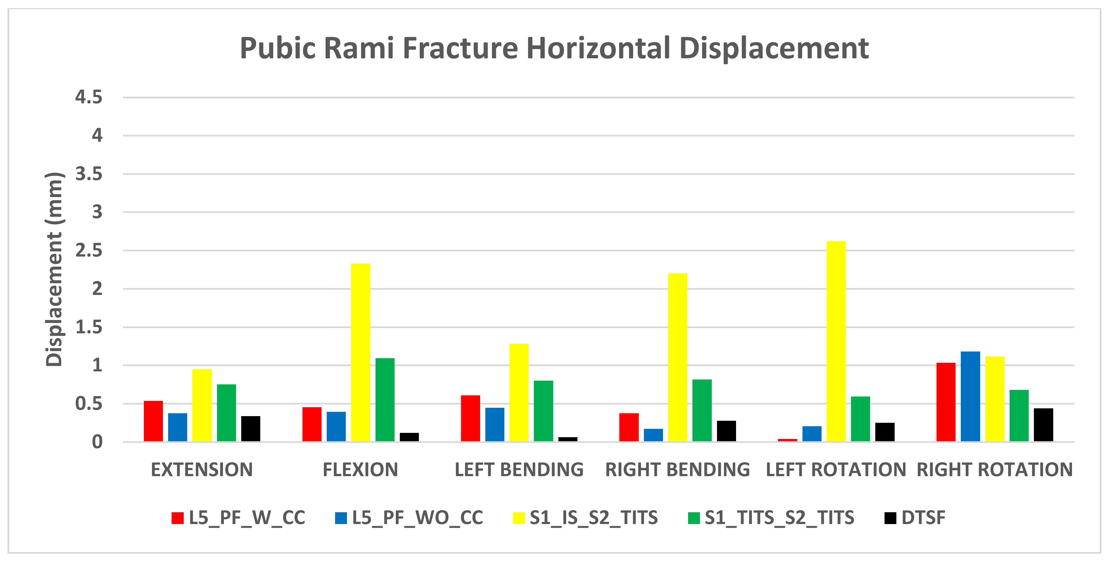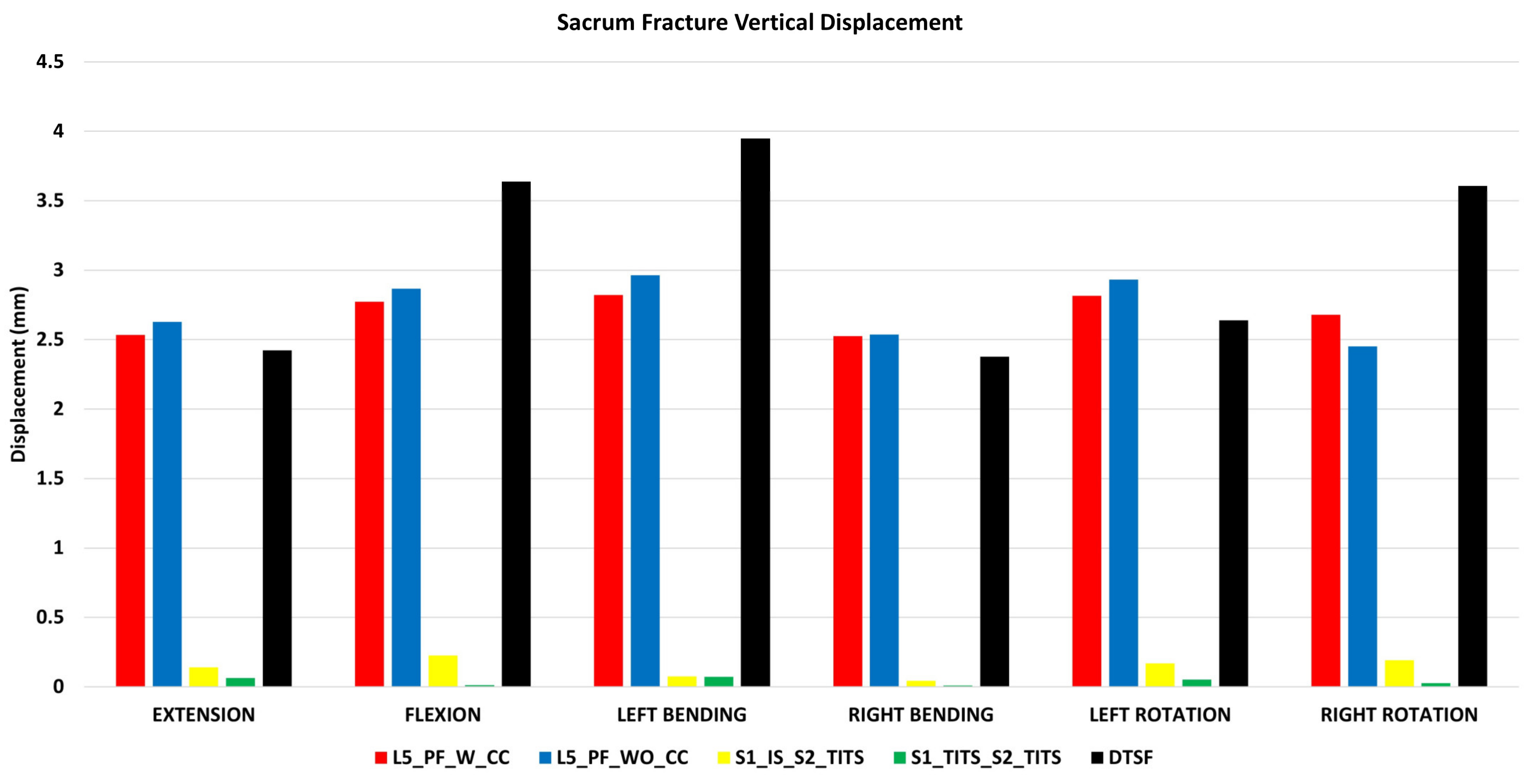 - Tripathi, S. Finite Element Analyses of Stabilization of Sacral Fractures (Zone I Denis Fracture) under One Leg Standing Stance; University of Toledo: Toledo, OH, USA, 2021. [Google Scholar]