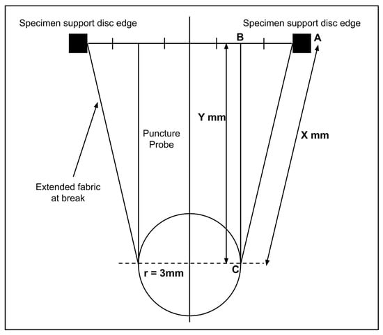 where r = 3 mm and x was the hypotenuse of the triangle ABC in Figure 2, where the vertical distance y was read from the displacement measured during the test.