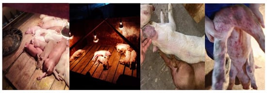 An acute outbreak of piglet death occurred in a pig farm in Guangdong Province. (Figure 1). Clinical symptoms included red skin, multiple hemorrhages, cyanosis, diarrhea, and loss of appetite. The daily mortality rate significantly increased, reaching up to 90%. Further examination of the diseased pigs showed positivity only for CSFV.