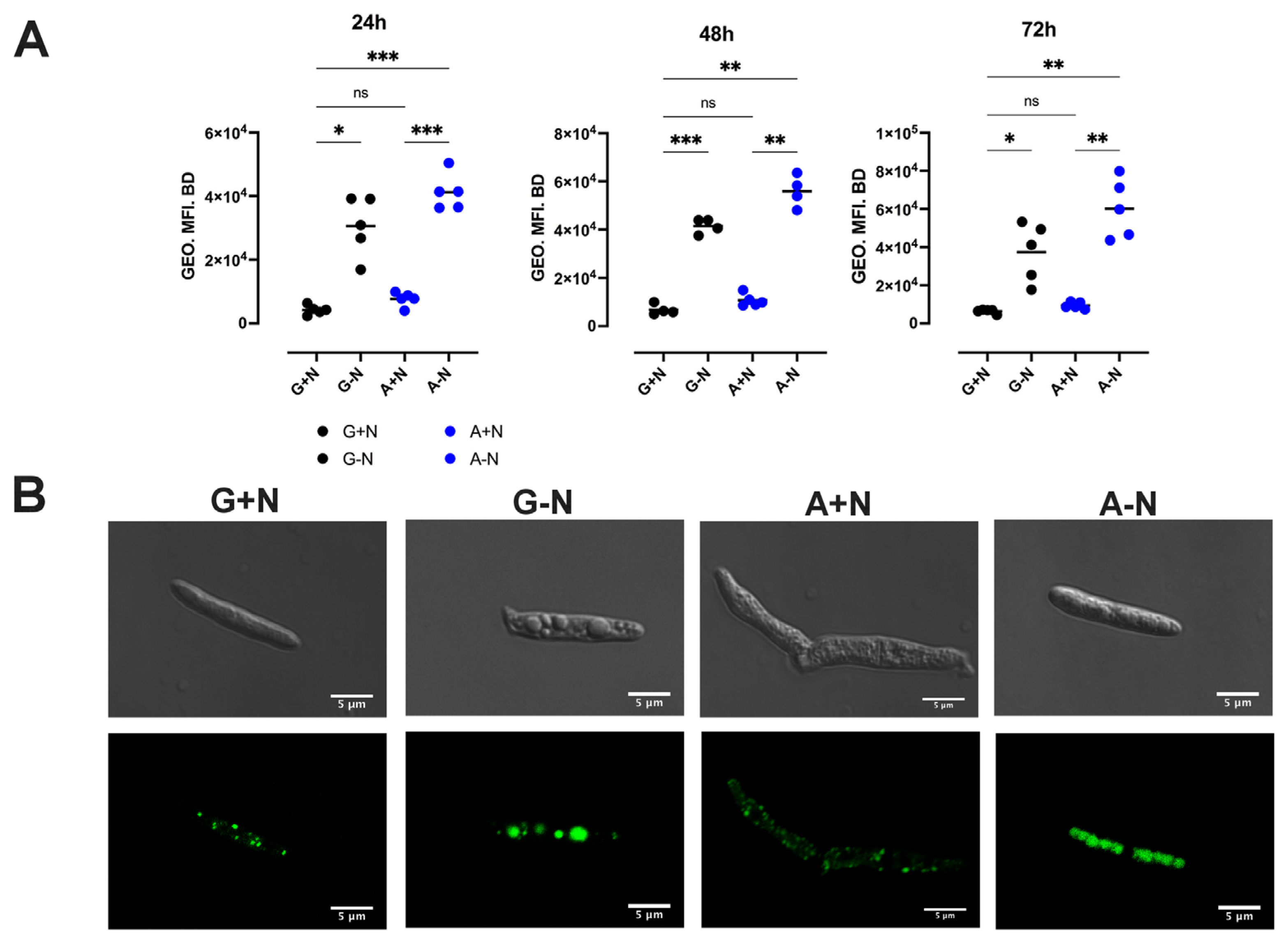 - Aguilar, L.R.; Pardo, J.P.; Lomelí, M.M.; Bocardo, O.I.L.; Juárez Oropeza, M.A.; Guerra Sánchez, G. Lipid Droplets Accumulation and Other Biochemical Changes Induced in the Fungal Pathogen Ustilago maydis under Nitrogen-Starvation. Arch. Microbiol. 2017, 199, 1195–1209. [Google Scholar] [CrossRef]