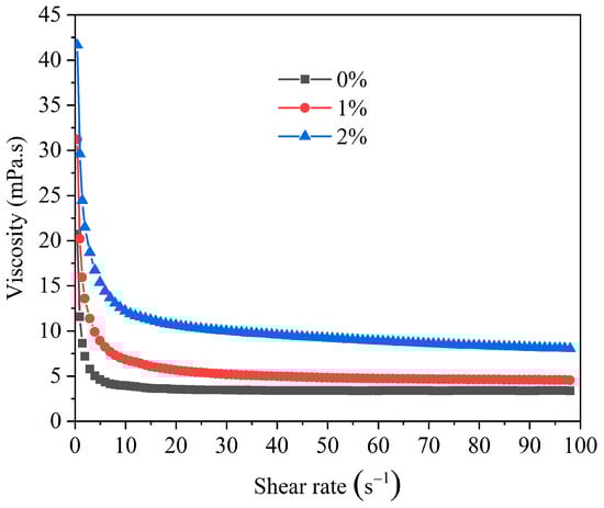 Shear dilution stands as one of the vital characteristics for evaluating the rheology for drilling fluids. It directly determines drilling efficiency and safety. Excellent shear dilution performance can endow drilling fluids with outstanding cuttings carrying properties. The influence of HAS on shear dilution was investigated (Figure 4).