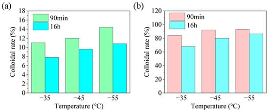 Effect of HAS on the colloid rate of drilling fluid at different temperatures ((a) 0%; (b) 2%).