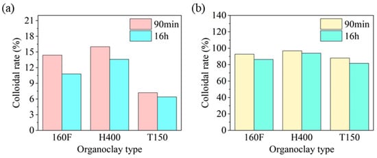 The effect of HAS on the colloid rate for drilling fluids with different organoclays ((a) 0%; (b) 2%).
