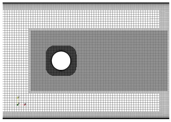 A block-structured mesh is used. Nodes are clustered near the cylinder surface, wake region, and pipe walls to resolve the boundary layer (Figure 2). In the pipe, DDES operates in the LES mode, and the mesh is uniform. In the DDES approach, inviscid fluxes are discretized with a hybrid scheme and the Roe method to maintain accuracy in the LES region and stability of the scheme in the RANS region with a non-uniform and coarse mesh. The distributions of flow quantities found from the RANS solution with the SST-model are used as initial conditions.