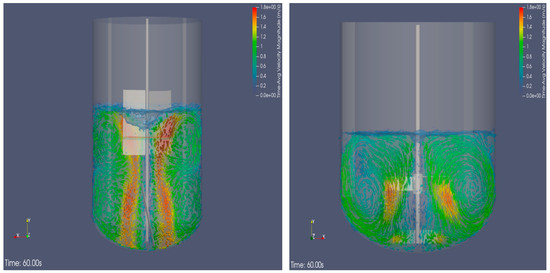 Our present computational methodology to model, simulate, and understand mixing-based multi-physics processes within Corteva includes using a Lattice Boltzmann LES framework on GPU architecture [32,33,34]. This strategy inherently alleviates the limitations posed by Reynolds Averaged Navier–Stokes (RANS)-equation-based approaches by resolving the transients in fluid flow, turbulence, and additional physics associated with scalar species transport, gas–solid, gas–liquid mass transfer, liquid–liquid immiscible interactions, non-Newtonian rheology, bubble coalescence/break-up, bubble/particle motion tracking, and rotating impeller/shaft geometries within the stirred tank reactor vessels or continuous flow reactor systems.