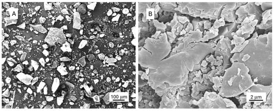 The obtained Raw-ADC comprised of particles with sizes from a few micrometers to hundreds of micrometers (Figure 1A). The surface of the Raw-ADC particles was relatively smooth (Figure 1B). All the activated and doped ADCs showed a relatively rough surface with broken and finer particles (Figure 1C–H). It is noteworthy that KOH-ADC presented the most surface roughness with well-developed porosity (Figure 1H). This is a result of the high carbon etching effect that is associated with KOH.