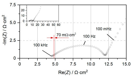 - EIS can be applied to measure RContact directly if its contribution to the resistance is large enough. However, determining RCompound can be challenging as it is overlaid by the electrolyte resistance, as both occur as a serial resistance contribution in the high-frequency region [].