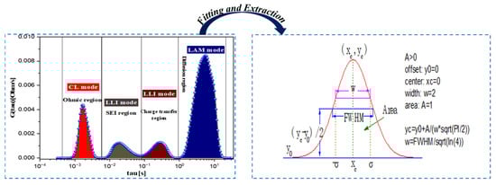 The DRT parameters are extracted by fitting Gaussian functions, Gi(τ), to the data, facilitating the identification of electrochemical processes, as illustrated in Figure 5. The parameters of each Gaussian peak provide critical insights and can be extracted from (2).