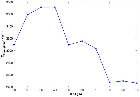The energy throughput corresponding to a specific DOD is expressed as,