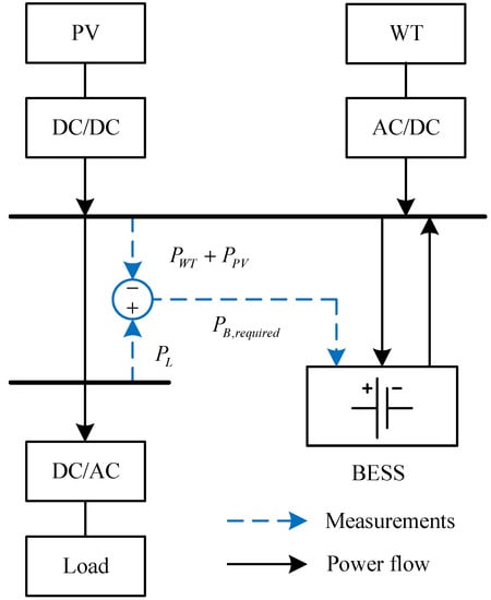 BESS is used to maintain the microgrid’s power balance. Thus, the required power of a BESS is the power mismatch between the load and the power generation. The balance between load and generation can be achieved through,
