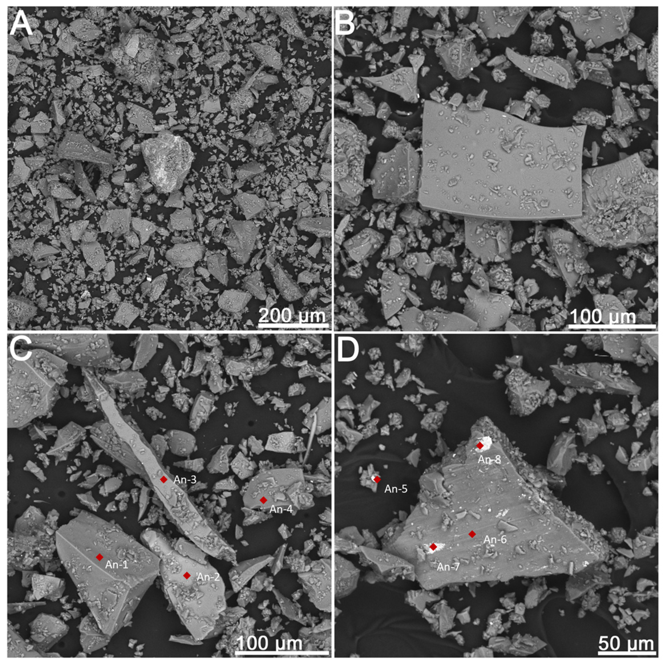 - Bernasconi, A.; Pellegrino, L.; Vergani, F.; Campanale, F.; Marian, N.M.; Galimberti, L.; Perotti, M.; Viti, C.; Capitani, G. Recycling Detoxified Cement Asbestos Slates in the Production of Ceramic Sanitary Wares. Ceram. Int. 2023, 49, 1836–1845. [Google Scholar] [CrossRef]