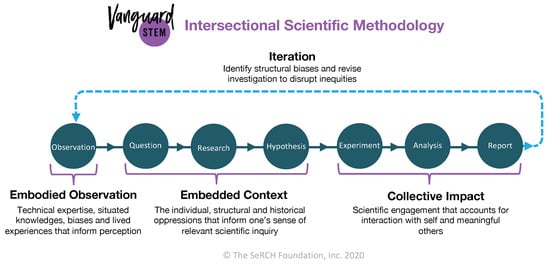 Here we describe the #VanguardSTEM intersectional STEM praxis based on the theoretical frameworks presented above. Full details of the #VanguardSTEM origin story can be found in Appendix A. It bears noting here that we refer to ourselves as “VanguardSTEM”, whether we use the ‘#’ symbol or not. Our current model can be found in Section 5.3, but the process by which we evolved our framework is material to the construction of the intersectional scientific methodology, so we describe its origin here.