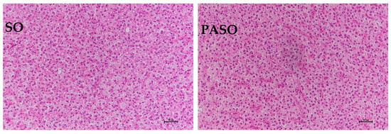 The cell membranes of the hepatopancreas in the four groups were intact (Figure 1), while a higher degree of vacuolization and lipid droplets was found in the HSO group, and a lower degree of vacuolization and lipid droplets was found in the PASO and HPASO groups, respectively.