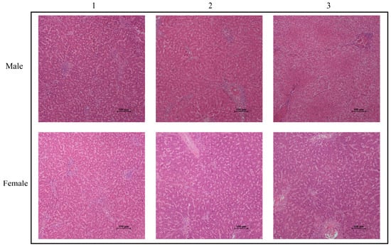 Histological observation of the liver of male and female tuna. Scale bar: 100 μm.