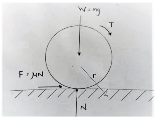 Figure 1 shows the free-body diagram for the driving wheel. To perform the preceding calculation, the tangential force (F), normal force (N) and friction coefficient (μ) need to be known first. The N is calculated as 23.125 N (obtained from static stress analysis at preliminary design stage), and the friction coefficient for the contact between the wheel and dry grass is between 0.5 to 0.8.