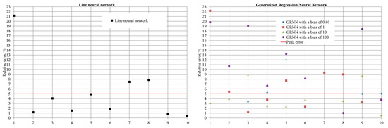 The numerical experiment was performed using a linear neural network, a radial basis neural network, and a generalized regression neural network.