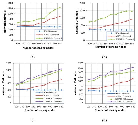 In accordance with references [5,6], the message complexity for a node in both DPV and ADPV is expressed as O(nΔ), where n represents the node count and Δ signifies the maximum degree of a node. Within the framework of KDPMS, the guarantee to preserve the maximum lifetime within segment i, denoted as Maxpli, is firmly established. The transmission of potential paths capable of updating Maxpli is facilitated through the exchange of pathinfo messages. It is imperative to emphasize that a path with a superior lifetime possesses the ability to update Maxpli. In the best-case, the initial path in DPTi boasts the highest path lifetime. Consequently, subsequent paths received by the node lack the capacity to update Maxpli. In this context, the node’s control message transmissions amount to 1. Conversely, in a worst-case scenario, the first path in DPTi features the lowest path lifetime, with subsequent paths arranged in ascending order of path lifetime in DPTi. Each received path in this scenario triggers a Maxpli update, leading to the transmission of control messages. Given that the node’s degree is represented as Δ, the number of messages transmitted in this circumstance equals Δ. On average, the number of transmitted messages in KDPMS is denoted as , which is nearly equal to half of the messages sent by the DPV and ADPV. □