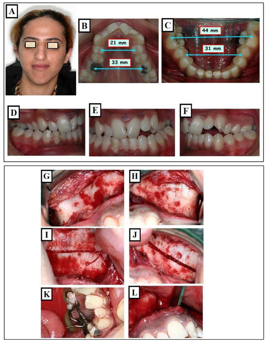 A prevalent therapeutic approach for younger individuals to address maxillary transverse deficiency is Rapid Maxillary Expansion (RME). The objective of this intervention is to broaden the midpalatal suture by exerting lateral forces against the teeth and marginal alveolar bone. RME proves effective in children and adolescents before sutural closure. However, in non-growing adolescents and young adults, the success rate of maxillary expansion decreases with the closure of sutures. (Figure 18A–L).