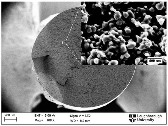 Scanning electron micrograph of the ceramic infill nanoparticles within an ABS matrix.