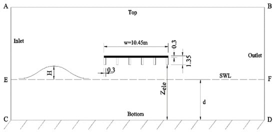 To investigate the effectiveness of the proposed method for the prediction of wave forces, a two-dimensional bridge deck-wave interaction model as shown in Figure 1 is considered. The prototype bridge deck of this model is similar to the damaged I-10 bridge across Escambia Bay, and the solitary waves are used to represent the tsunamis and storm surge. According to the study performed in [], the horizontal force and vertical force can be expressed as functions of the involved parameters: