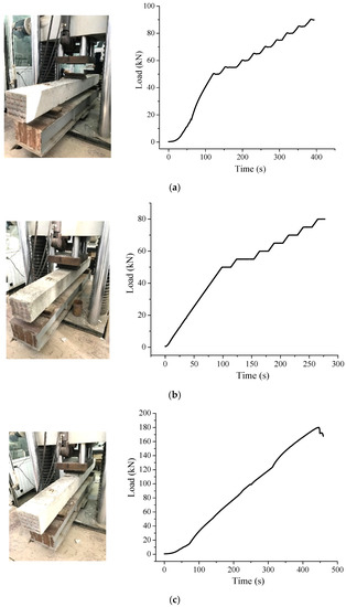 The results of static tests until the first crack appeared and the failure loads for the bearers are presented in Figure 14 and Table 5, respectively. The cracking loads for PSB3 and PSB4 were Fbrn3 = 90.4 kN and Fbrn4 = 80.0 kN, respectively. The corresponding failure loads were FbBn3 = 180.24 kN and FbBn4 = 159.25 kN, respectively.