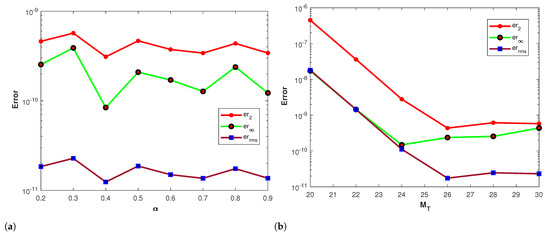 where and represent the analytic and numerical solutions, respectively.