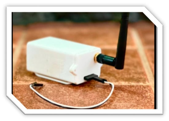 - External antenna: The external antenna is directly connected to the circuit board of the microcontroller. This component is used to increase the range of the datalogger so that the data can be transferred to the drone over longer distances. The antenna has excellent performance records for dual-band and omni-direction broadcasting and receiving. The component is capable of being tilted or swiveled for enhanced signal connections;