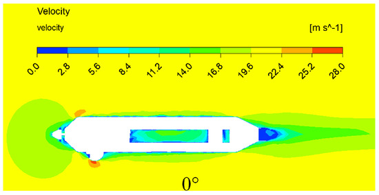The near water surface fluid simulation results at the attack angle 0° and velocity 20 m/s.