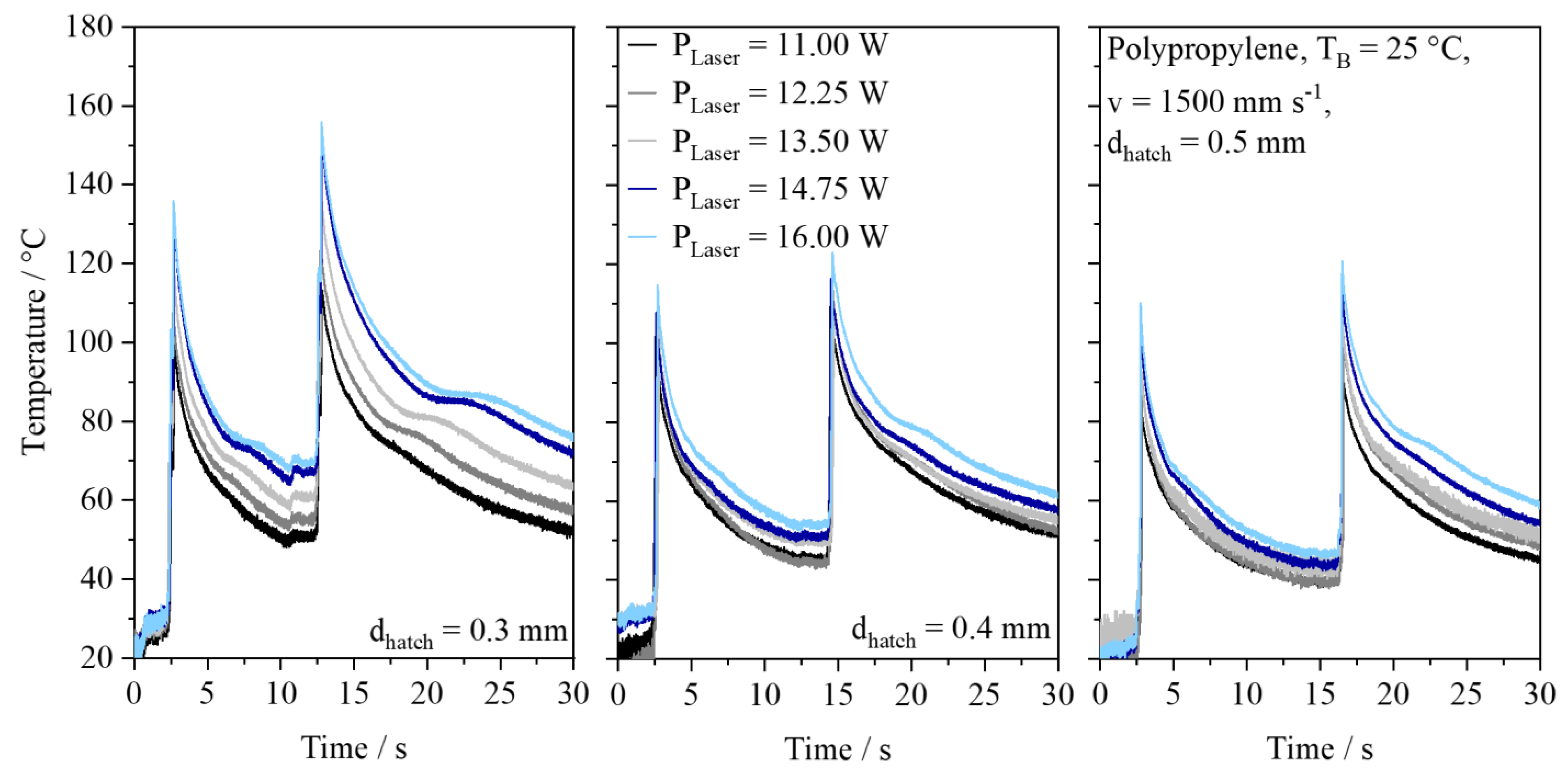 - Greiner, S.; Wudy, K.; Wörz, A.; Drummer, D. Thermographic investigation of laser-induced temperature fields in selective laser beam melting of polymers. Opt. Laser Technol. 2019, 109, 569–576. [Google Scholar] [CrossRef]