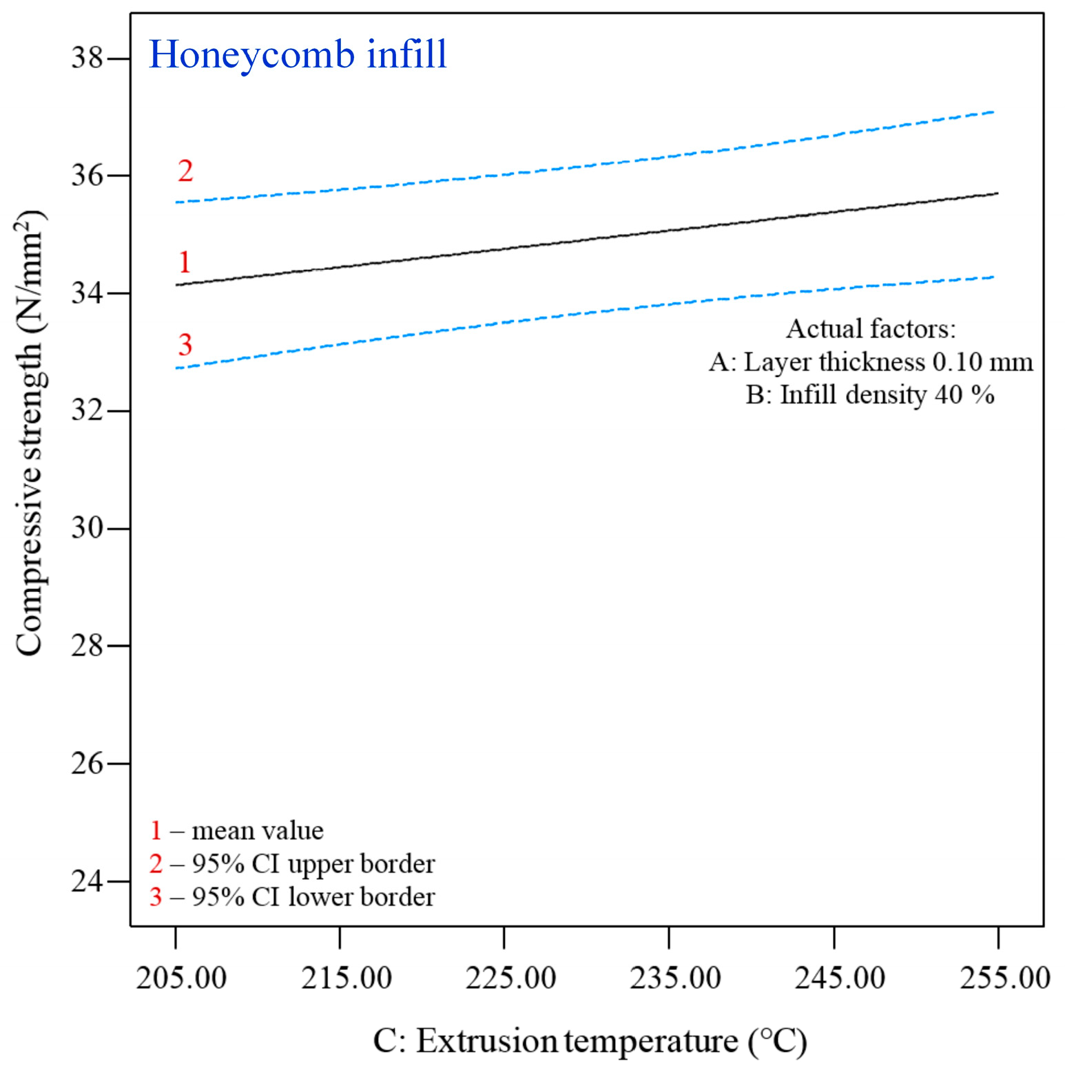 3.1.2. Statistical Analysis of Compressive Strength—Honeycomb Infill (H)
