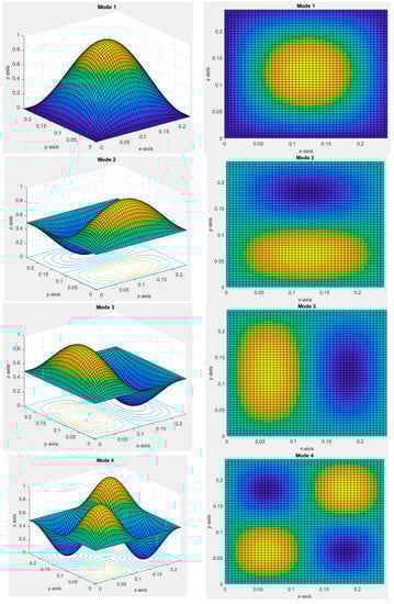 where (m = 1, 2, …) and (n = 1, 2, …), where m and n are the wave numbers along the x- and y-directions, respectively, and is the natural frequency of vibration.