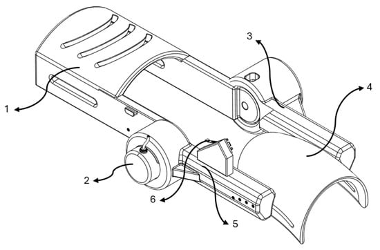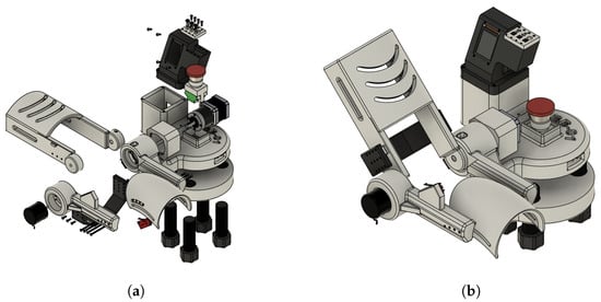 Figure 4a,b show the mechanical design of the proposed system excluding the section dedicated to the control unit, the driver for the motor control, and the power supply module.