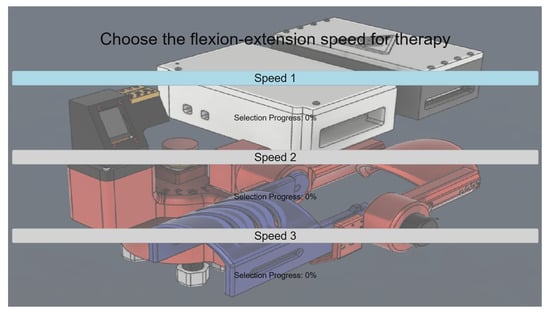 The exoskeleton system uses a specially designed Python™ signal processing application to identify alpha wavebands in EEG signals. When alpha activity is detected, a progress bar that graphically depicts the current selection state is activated by a graphical user interface (GUI). When the system detects a voluntary eye blink using the same EEG signal stream, it cycles to the next selectable option and begins the alpha wave detection process anew. This system response enables intuitive, hands-free navigation through the control interface in a non-invasive manner. Through a planetary gear motor built into the elbow joint, the exoskeleton begins to move once a selection is verified as matching one of the preset velocity parameters. For position control, the motor uses a sinusoidal input, which contributes to steady and fluid arm movement. A rotary incremental encoder measures the angle of the arm, which the system progressively increases during flexion to about 130°. After reaching this point, the motor smoothly switches directions to start the extension phase, maintaining the same sinusoidal pattern throughout the cycle. This mechanism facilitates a natural and continuous range of motion during therapy sessions, allowing for a seamless experience. The selectable options navigated via alpha wave activity and blink detection correspond to the velocity settings of the rehabilitation exercise. Additionally, the system is also equipped with a Brain-Computer Interface (BCI), providing patients with the opportunity to play an active part in treatment.