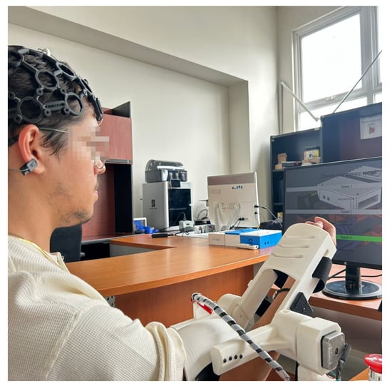 - Sarhan, S.M.; Al-Faiz, M.Z.; Takhakh, A.M. EEG-Based Control of a 3D-Printed Upper Limb Exoskeleton for Stroke Rehabilitation. Int. J. Online Biomed. Eng. 2024, 20, 99–112. [Google Scholar] [CrossRef]