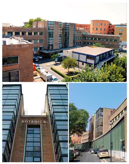 - Azzaro, B. La Città Universitaria Della Sapienza di Roma e le Sedi Esterne 1907; Gangemi: Roma, Italy, 2012. [Google Scholar]