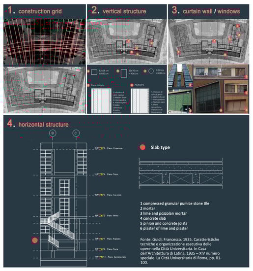 - Guidi, F. Caratteristiche Tecniche e Organizzazione Esecutiva Delle Opere Nella Città Universitaria Casa dell’Architettura di Latina; 1935–XIV Numero Special; La Città Universitaria di Roma: Roma, Italy, 1935; pp. 81–100. [Google Scholar]